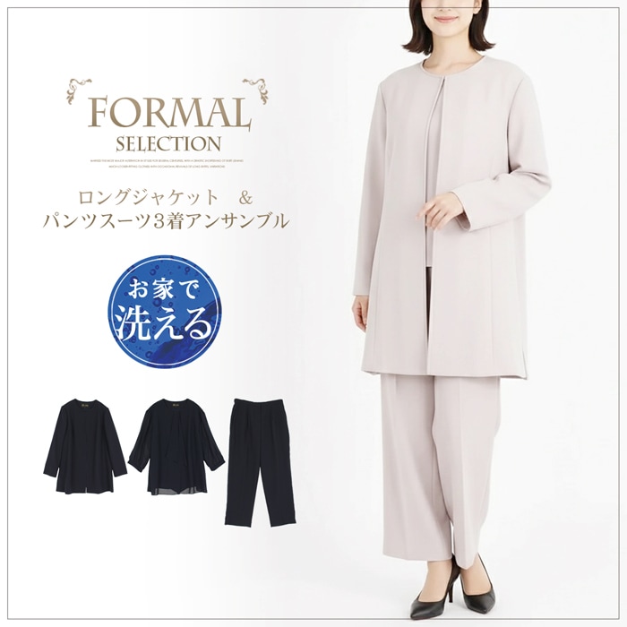 送料無料 フォーマル/ロングジャケット&パンツスーツ3ピースセット●カラーフォーマル スーツ レディース 3点セット ブラウス 洗える UV 入卒学式 入卒園式 40代 オールシーズン トープ 大きいサイズ 17号 23号 TV通販で大人気[56212]