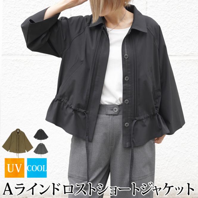 訳あり 某ブランド タグカット COOL&UV ジャケット ショート ドロスト Aライン フレアー袖 テントライン●レディース アウター 羽織り カジュアル おしゃれ ブラック カーキ グレー 大きいサイズ LL[11748]【3980円以上送料無料】