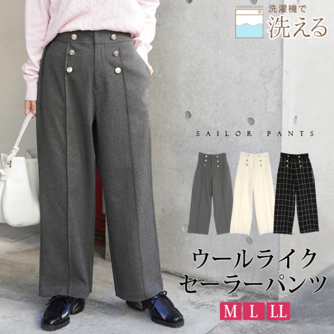 訳あり 某ブランド タグカット パンツ ストレッチ ワイドパンツ ウールライク セーラーパンツ センタープレス●レディース ボトムス ズボン ロング カジュアル アイボリー グレー チェック 大きいサイズ LL[11782]