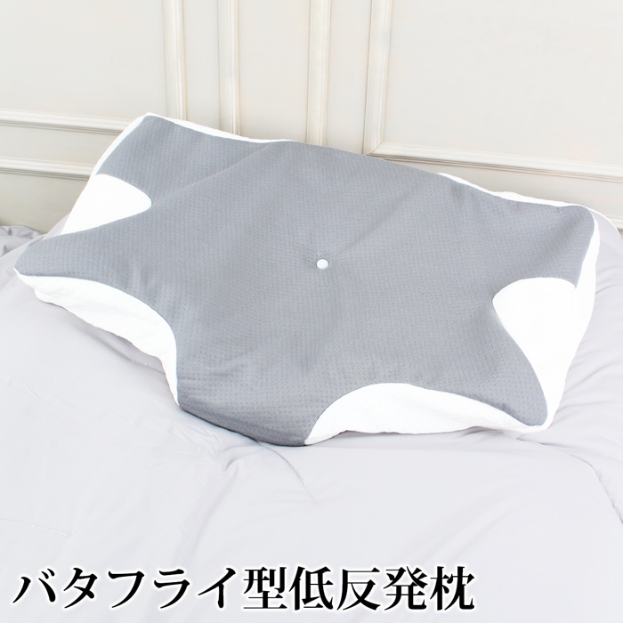 送料無料 枕 まくら ピロー 低反発 バタフライ型 2段階調整 4D構造●安眠枕 快眠枕 仰向け 横向き 寝返り 立体 アームレスト ネックフィット 通気性 二重保護 内蔵カバー 安眠 快眠 グレー TV通販で大人気[17472]