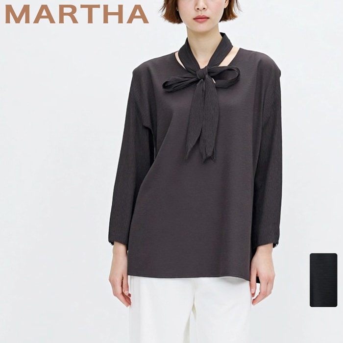 送料無料【MARTHA】マーサ●ボウタイVネックプリーツブラウス[26363]