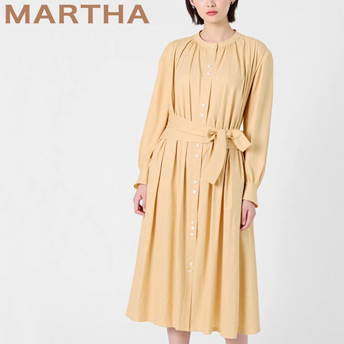 【MARTHA】マーサ★バンドカラーフリル袖ワイドワンピース<メーカー希望小売価格¥11,000>[16906]【4800円以上送料無料】