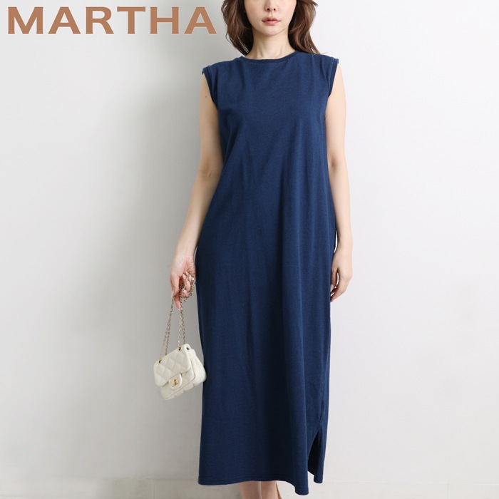 送料無料【MARTHA】マーサノースリーブデニムジャージーワンピース[16984]