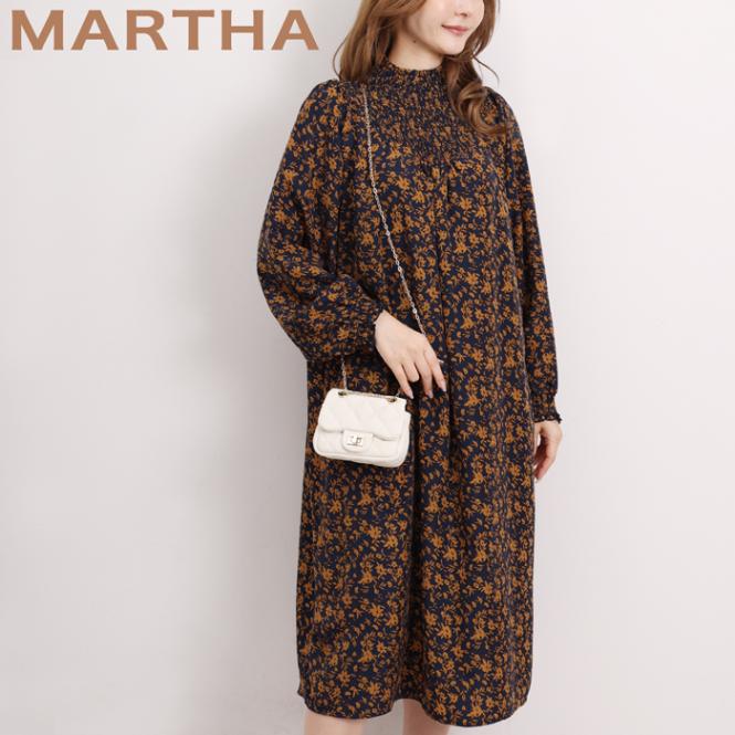 【MARTHA】マーサ●小花柄シャーリングネックワンピース[16991]