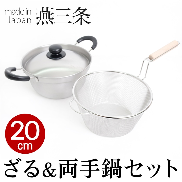 丈夫で使いやすい 日本製 ザル付万能鍋 20cm♪小さいサイズ 18-8ステンレス製 サビにくい 調理用品 キッチン TV通販で大人気 [7792]