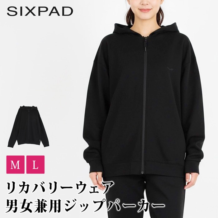 送料無料 訳あり 個数限定 リカバリーウェア SIXPAD シックスパッド ユニセックス 男女兼用 スウェット ルームウエア ジップアップ フーディー●遠赤外線 パジャマ 疲労回復 ブラック 大きいサイズ LL TV通販で大人気[57296]