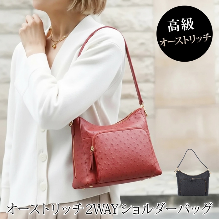 送料無料 ショルダーバッグ オーストリッチ 本革 レザー 2WAY●レディース 鞄 かばん ハンドバッグ 斜め掛け 無地 大人 上品 シンプル カジュアル おしゃれ ブルー ブラック グリーン トープ TV通販で大人気[54284]