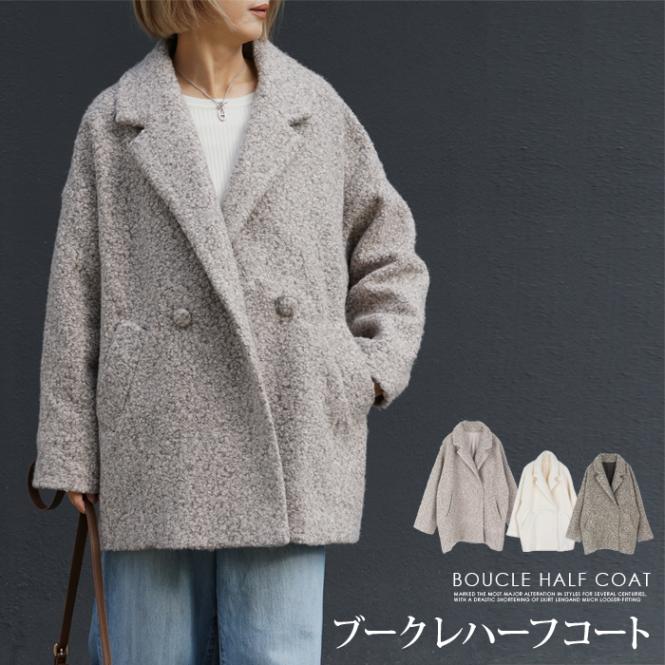 訳あり 某ブランド タグカット コート ハーフコート Pコート ブークレ ブクレ●レディース アウター ミドル丈 長袖 カジュアル おしゃれ オフィス 通勤 アイボリー ブラックxベージュ グレージュ[10772]