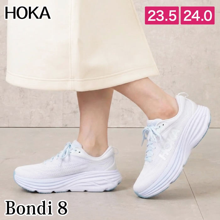 送料無料 訳あり 個数限定 HOKA ホカ スニーカー Bondi8 ボンダイ8 ランニングシューズ●レディース 靴 厚底 ウォーキングシューズ おしゃれ ホワイト 23.5cm 24cm[58209]