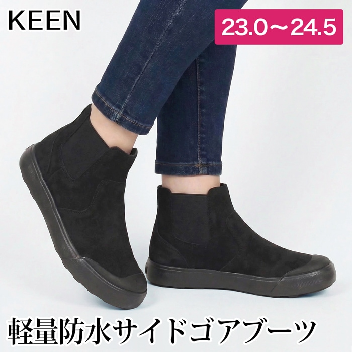 送料無料 訳あり 個数限定 KEEN キーン ブーツ サイドゴア 防水 天然皮革 レザー 本革●レディース 軽量 靴 厚底 シューズ ショートブーツ 通勤 通学 ブラック 23 23.5 24 24.5[58212]