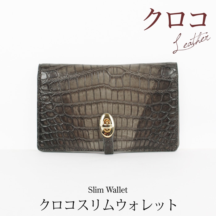 送料無料 財布 サイフ 二つ折り ウォレット クロコダイル 本革 レザー スリム 日本製●レディース 長財布 コンパクト 小銭入れ 無地 大人 上品 カジュアル シンプル おしゃれ クロム TV通販で大人気[58244]