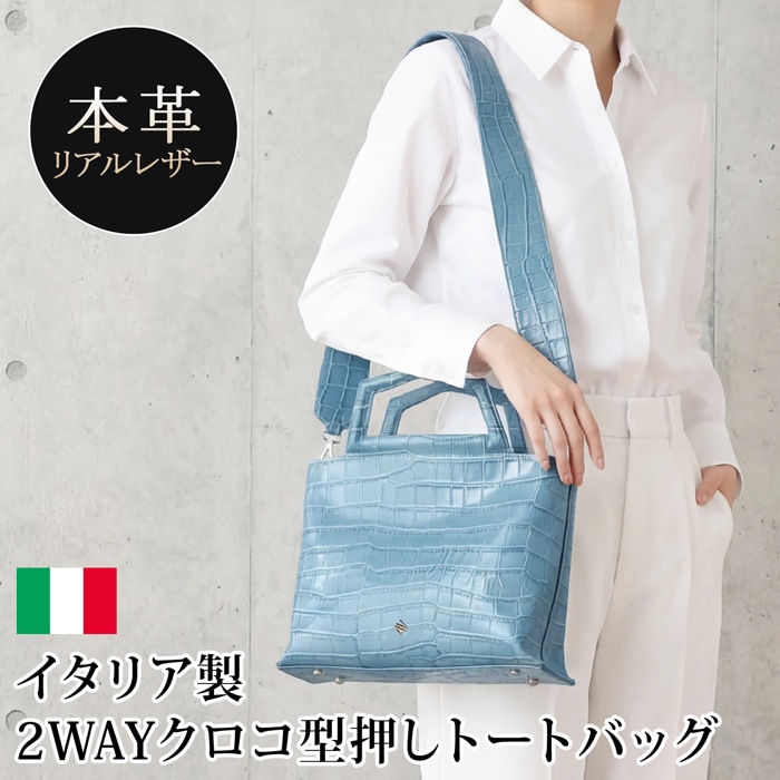 送料無料 トートバッグ ショルダーバッグ 2WAY 牛革 本革 レザー クロコ型押し●レディース 手持ち 肩掛け A4 鞄 無地 大人 上品 カジュアル シンプル おしゃれ ブルー TV通販で大人気[58243]