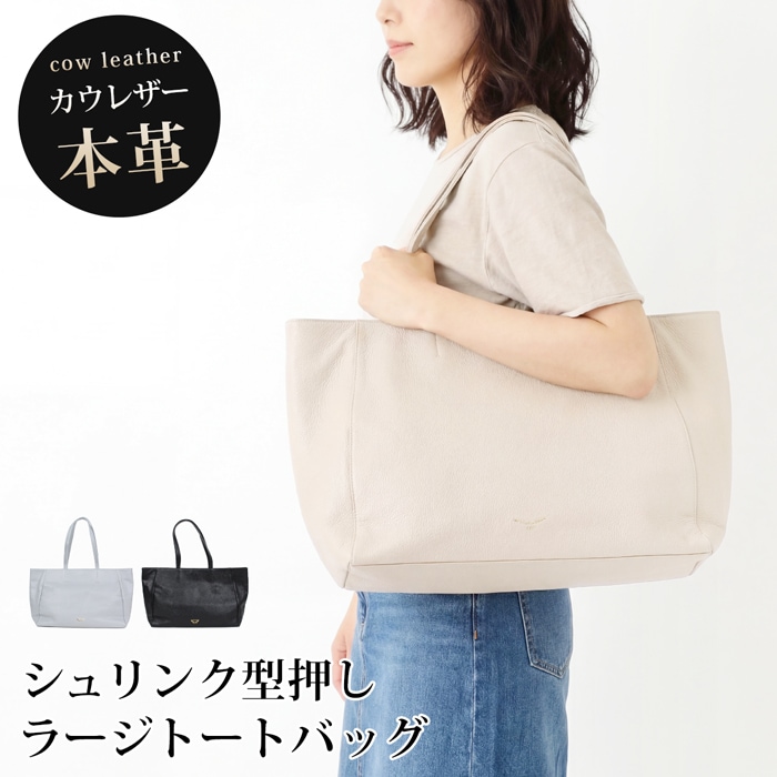 送料無料 トートバッグ 本革 牛革 レザー シュリンク型押し A4●レディース 鞄 ラージ ショルダーバッグ 肩掛け 大容量 大人 上品 カジュアル おしゃれ オフィス 通勤 ブラック ベージュ グレー TV通販で大人気[58252]
