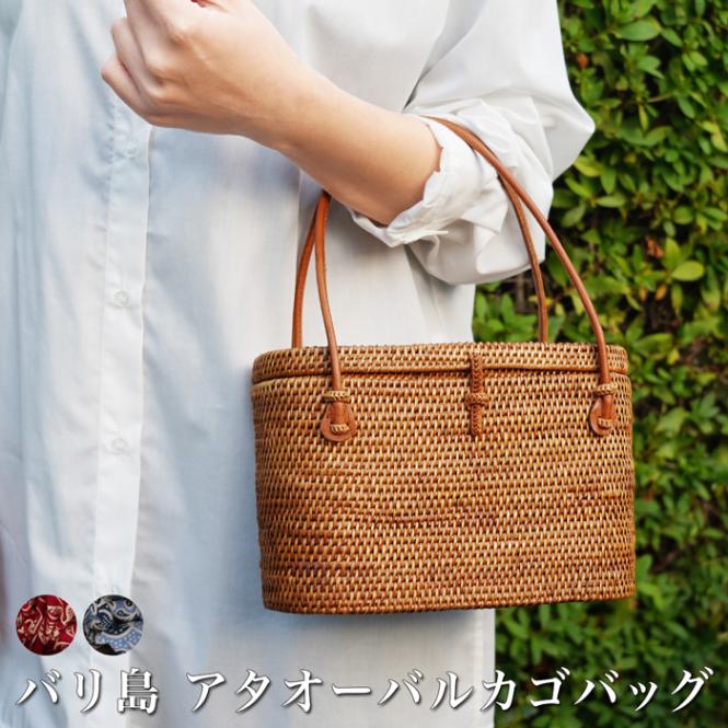 送料無料 かごバッグ アタバッグ バリ島 インドネシア シダ 手編み アジア雑貨 オーバル 手提げ●レディース かばん 鞄 内布付き 蓋付き カジュアル 浴衣 和装 おしゃれ ブラウン[57210]