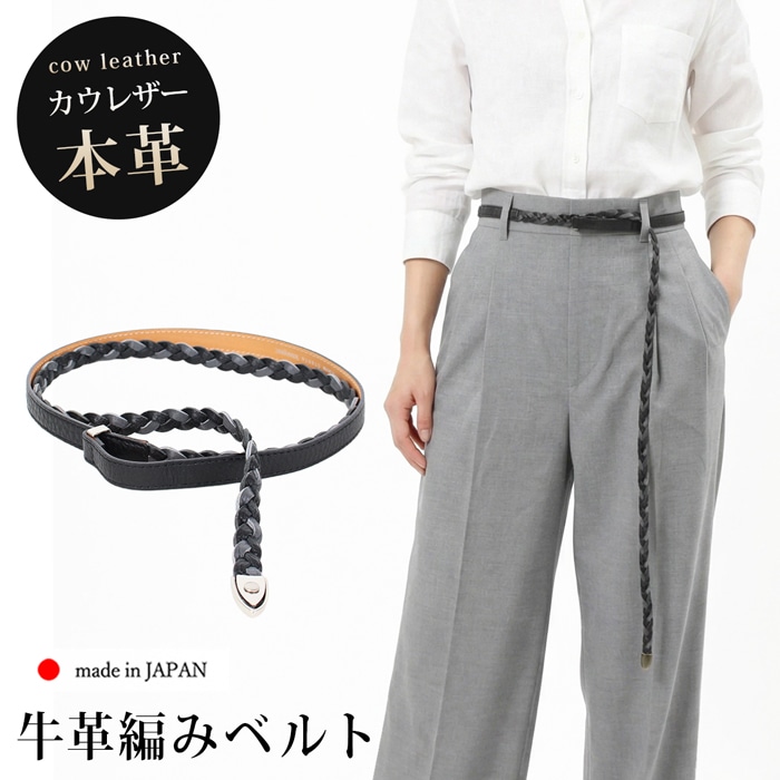 送料無料 訳あり 某ブランド タグカット レザーベルト 編みベルト 牛革 本革 カウレザー 日本製 メッシュ●レディース ノンホール ファッション小物 無地 大人 上品 カジュアル シンプル おしゃれ オフィス 通勤 ブラック[57291]