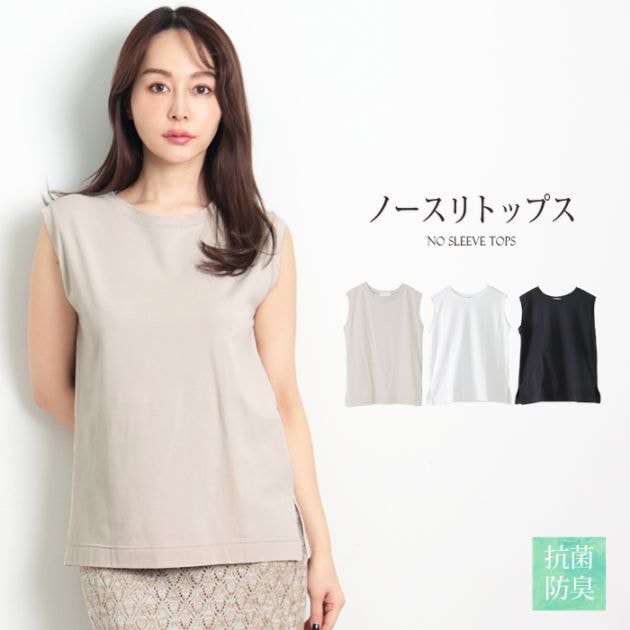 訳あり タグカット 抗菌ノースリトップス♪タンクトップ レディース トップス ノースリーブ カットソー インナー 抗菌 防臭 ロング丈 シンプル 無地 ベージュ ブラック オフホワイト[5722]【メール便可】
