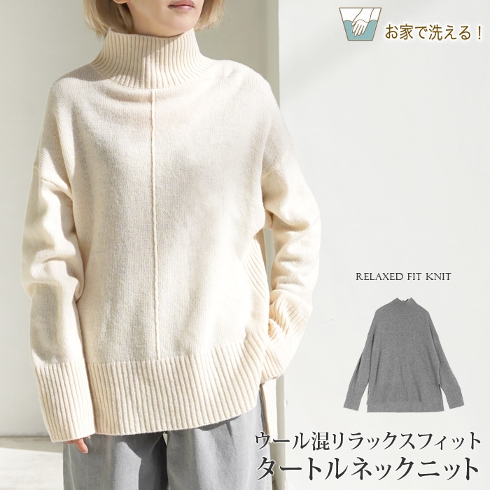 訳あり 某ブランド タグカット ニット ウール混 タートルネック ハイネック セーター ワイドフィット●レディース トップス 長袖 無地 大人 上品 シンプル カジュアル オフホワイト グレー 大きいサイズ LL[58202]