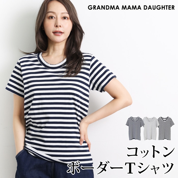 GRANDMA MAMA DAUGHTER グランマ・ママ・ドーター Tシャツ コットン 綿 半袖 ボーダー● レディース トップス カットソー プルオーバー クルーネックベーシック カジュアル おしゃれ ブラック グレー ネイビー[10785]【メール便可】