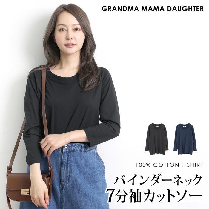 GRANDMA MAMA DAUGHTER Tシャツ コットン 綿 七分袖 トップス カットソー●レディース インナー プルオーバー 無地 大人 上品 シンプル ベーシック カジュアル おしゃれ ブラック ネイビー[10784]【メール便可】
