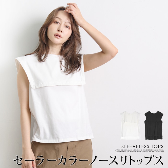 訳あり 某ブランド タグカット トップス 綿混 セーラーカラー ノースリーブ カットソー●レディース 襟付き 無地 洗える プルオーバー 大人 上品 シンプル カジュアル おしゃれ ブラック オフホワイト[9762]【メール便可】