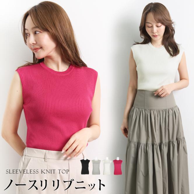 訳あり 某ブランド タグカット ニット トップス ノースリーブ●レディース レイヤード 無地 大人 上品 シンプル カジュアル おしゃれ オフィス 通勤 ボーダー ブラック オフホワイト ピンク[10739]【メール便可】