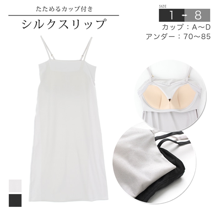 たためるカップ付きシルクスリップ●絹 肌着 ペチコート キャミワンピ インナーワンピ ブラ ランジェリー キャミソール レディース ランジェリー ブラック ペールグレー A B C Dカップ【メール便可】[11728]