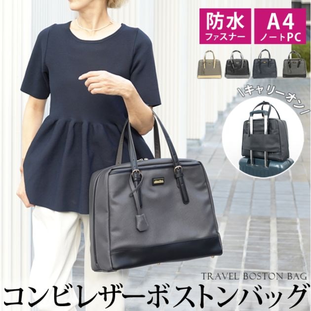 ボストンバッグ キャリーオン トラベル 旅行 A4 レディース 鞄 本革 牛革 レザー●エコレザー 大人 上品 シンプル カジュアル おしゃれ ビジネス 通勤 ネイビー ベージュ グレー ブラック[10780]