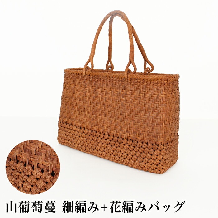 送料無料 【訳あり】 山葡萄 かごバッグ 山葡萄蔓 山ぶどう やまぶどう 蔓 つる つるかごバッグ 籐バッグ 細編み 菱編み● レディース 鞄 かばん 内布付き スクエア型 天然素材 ハンドバック ブラウン TV通販で大人気[56288]【3980円以上送料無料】