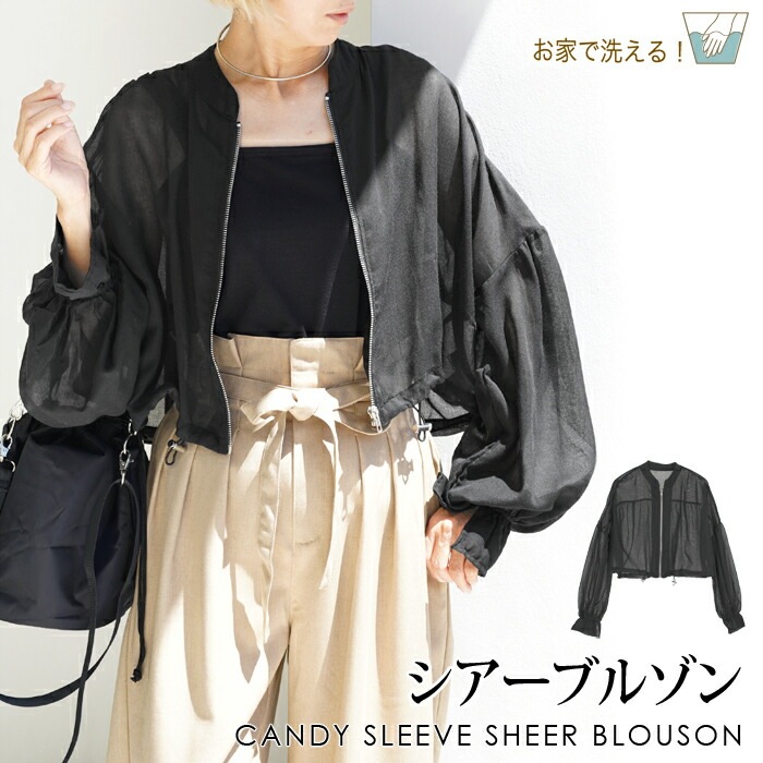 ブルゾン レディース アウター ライトアウター 羽織り 長袖 ショート丈 大きいサイズ シアーブルゾン キャンディスリーブ 薄手 ジャケット シースルー 長袖 無地 大人 上品 シンプル カジュアル おしゃれ ブラック[11702]【3980円以上送料無料】
