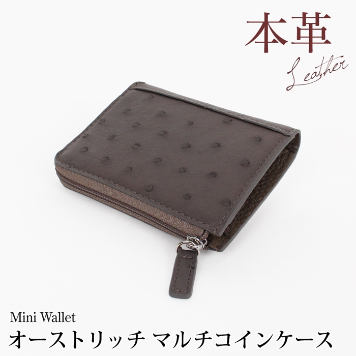 送料無料 ミニウォレット コインケース 財布 ミニ オーストリッチ 本革 L字ファスナー●レディース コンパクト マルチ 小銭入れ エキゾチックレザー スリム カジュアル おしゃれ トープ TV通販で大人気[56276]【3980円以上送料無料】