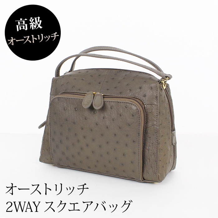 送料無料 バッグ 2WAY ショルダー ハンドバッグ 本革 オーストリッチ●レディース 鞄 かばん スクエア 肩掛け 斜め掛け 手持ち 無地 大人 上品 シンプル カジュアル おしゃれ トープ TV通販で大人気[56279]【3980円以上送料無料】