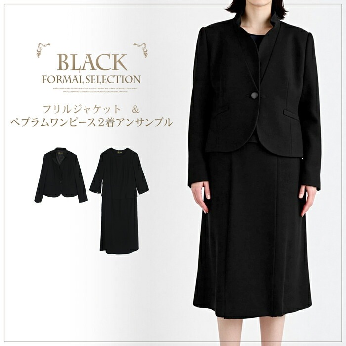 送料無料 フォーマル/フリルジャケット&ワンピース2ピースセット●スーツ レディース ワンピース ジャケット 2点セット 法事 喪服 礼服 入学式 入園式 卒業式 卒園式 40代 オールシーズン 7号 TV通販で大人気[56254]【3980円以上送料無料】