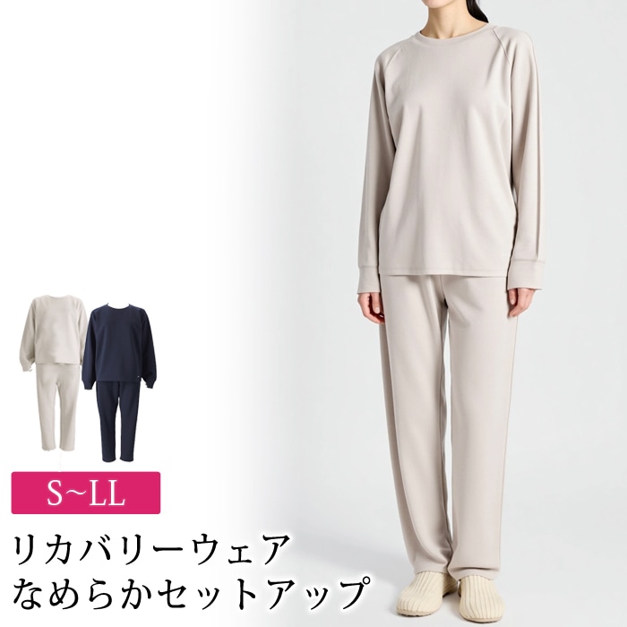 送料無料 訳あり 個数限定 リカバリーウェア 遠赤外線 ルームウエア SET 2点セット 上下セット●レディース トップス ボトムス パジャマ 部屋着 長袖 無地 保温 グレージュ ネイビー 大きいサイズ LL TV通販で大人気[56257]【3980円以上送料無料】