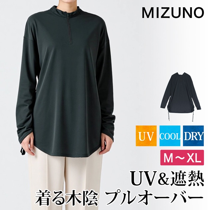 送料無料 訳あり 個数限定 MIZUNO ミズノ 着る木陰 遮熱 UV 吸汗 速乾 プルオーバー 長袖 ハイネック● レディース トップス 前後 2WAY ストレッチ 無地 大人 上品 シンプル カジュアル おしゃれ ブラック 大きいサイズ XL TV通販で大人気[56292]【3980円以上送料無料】
