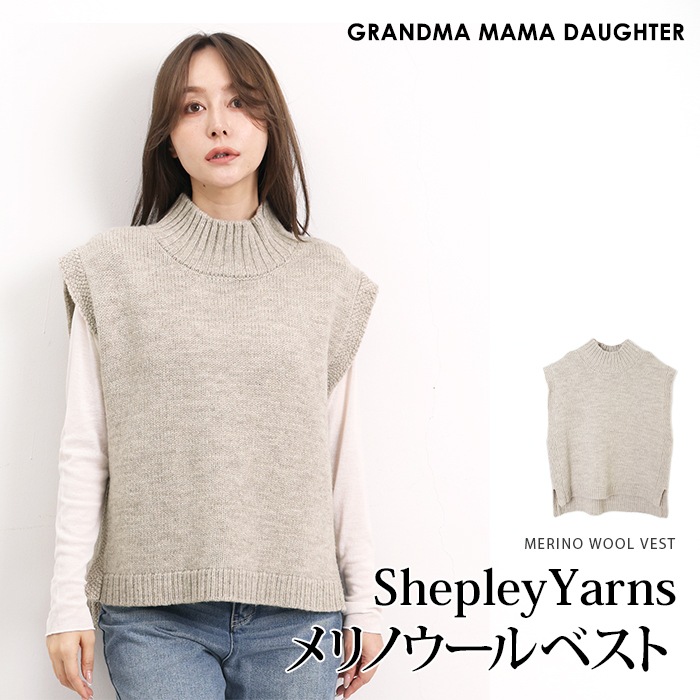 送料無料 GRANDMA MAMA DAUGHTER グランマ・ママ・ドーター ベスト ジレ ニット ハイネック メリノウール●レディース トップス ShepleyYarns ニット プルオーバー レイヤード おしゃれ ナチュラル[56234]【3980円以上送料無料】
