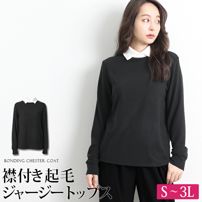 送料無料 起毛 ジャージー トップス プルオーバー●レディース あったか 襟付き 長袖 ハイネック レイヤード 無地 大人 上品 カジュアル おしゃれ オフィス 通勤 ブラック 大きいサイズ LL 3L sus[9730 9730ss]【3980円以上送料無料】