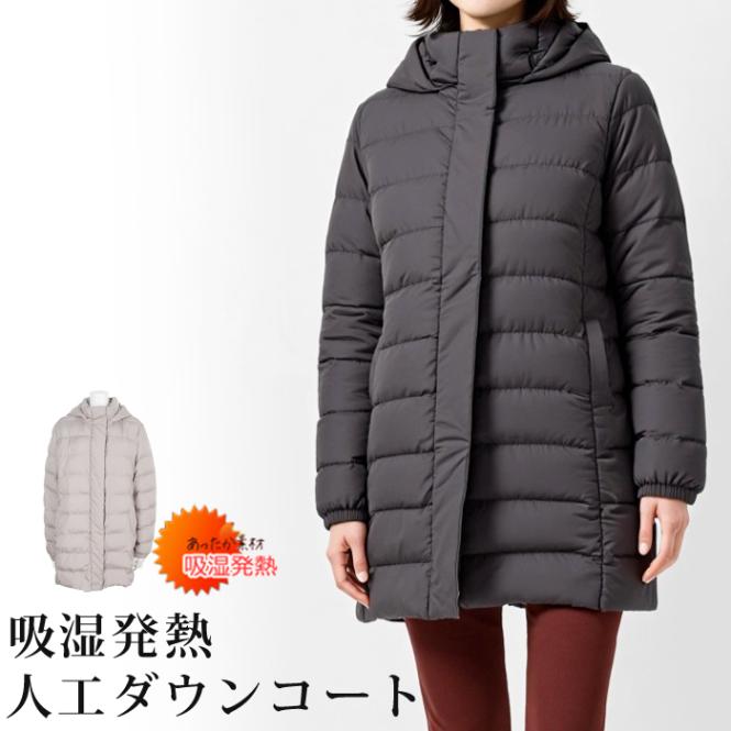 送料無料 コート 中綿 吸湿発熱 防寒 フード付き 人工羽毛●レディース ダウン アウター ハーフコート ミドル丈 長袖 無地 大人 上品 シンプル カジュアル おしゃれ ブラック キャメル 大きいサイズ LL 3L TV通販で大人気[56209]【3980円以上送料無料】