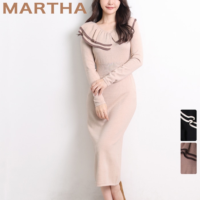 【MARTHA】マーサ●フリルネックロングニットワンピース[26327]