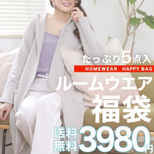 送料無料【5点3980円】ふわもこルームウェアが3枚入る 2025 冬おうちセット 福袋 ルームウェア ワンピ パンツ スカート カーデ 着圧ルームウェア エコバッグ[8043]