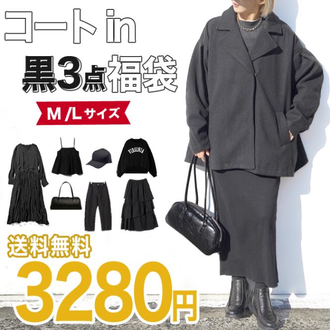 送料無料 ブラックフライデー M/Lサイズ選べる福袋【送料込3280円】コート入り ブラックITEM 4点in福袋2025 2026 レディースファッション 中身が見える 30代40代50代[8052]