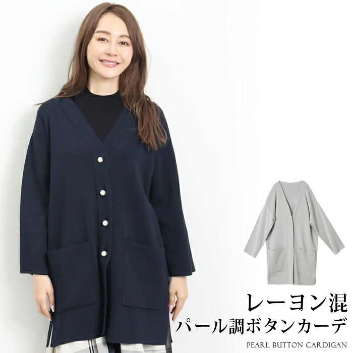 ラスト数点 ネイビーLサイズのみのため 訳あり 某ブランド タグカット カーディガン Vネック レーヨン パールボタン●レディース トップス ロング 羽織り 無地 シンプル 大人 上品 おしゃれ カジュアル オフィス 通勤 グレー ネイビー[52284]【3980円以上送料無料】