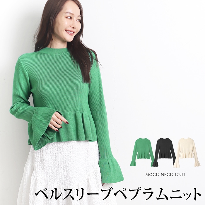 ラスト数点 アイボリーのみのため 訳あり 某ブランド タグカット ニット ボトルネック ハイネック ペプラム●ニット レディース トップス フレア袖 セーター 長袖 無地 大人 上品 シンプル カジュアル おしゃれ アイボリー[9756]