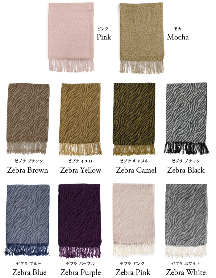 マフラー ストール 大判ストール アニマルプリント アニマル柄 ●こちらの商品はメール便発送(290円)対応商品です● アニマル柄ジャガードマフラーの登場です☆ ハードになりがちなアニマルパターンが とても合わせやすくなりました☆ どれにしようか迷っちゃいそう! 普段のコーデにスパイスを加えてみて。 ○サイズ: 《ゼブラ柄》横/(約)180cm 縦/(約)61cm フリンジ/(約)10cm 《モカ・ピンク》横/(約)174cm 縦/(約)71cmフリンジ/(約)10cm ○材質: 《ゼブラ柄ホワイト・ピンク》アクリル55%、レーヨン45% 《ゼブラ柄ホワイト・ピンク以外》アクリル50%、レーヨン50% 《モカ・ピンク》アクリル100% ○生産国:中国 ○洗濯表示:ドライのみ