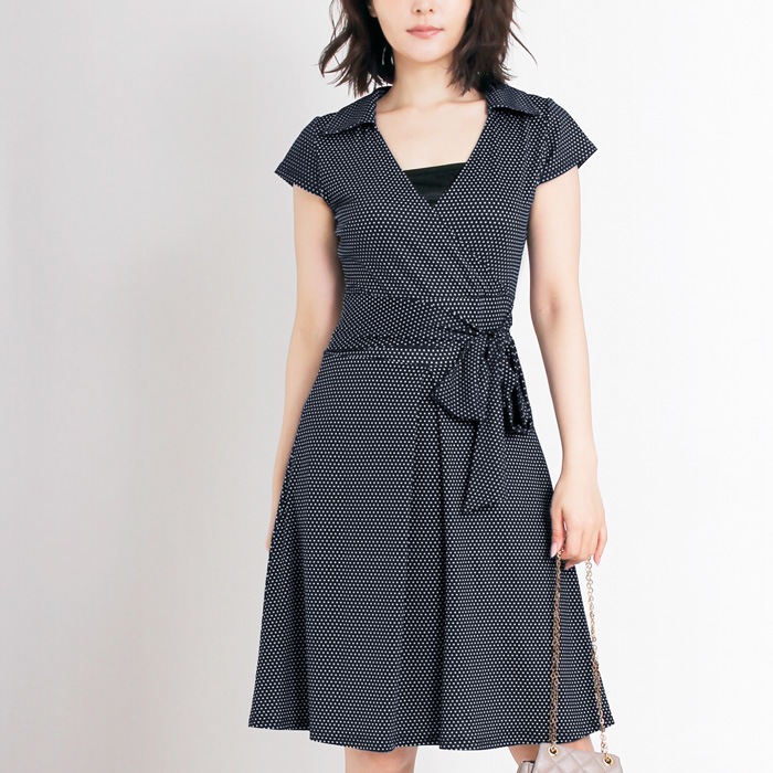 ワンピース カシュクールワンピース ドット MARTHA マーサ ジャージー レディース プリント カットソー ひざ丈 膝丈 ミモレ丈 大人 上品 半袖 L LL 大きいサイズ パーティー 16467 ○サイズ: ※目安となる実寸サイズとなります。 《Mサイズ》 身丈/(約)90cm バスト/(約)84cm 肩幅/(約)34cm 袖丈/(約)10cm 《Lサイズ》 身丈/(約)91cm バスト/(約)88cm 肩幅/(約)35.5cm 袖丈/(約)11cm 《LLサイズ》 身丈/(約)92cm バスト/(約)92cm 肩幅/(約)37cm 袖丈/(約)12cm ○材質:表地 95%ポリエステル 5%ポリウレタン 裏地 95%ポリエステル 5%ポリウレタン ○洗濯表示:洗濯機可、ドライクリーニング可 ※濃色のものは着用中の摩擦や汗によって色落ちする場合があります。 ※洗濯の際は蛍光増白剤の入っていない洗剤をご使用下さい。 ○生産国:中国