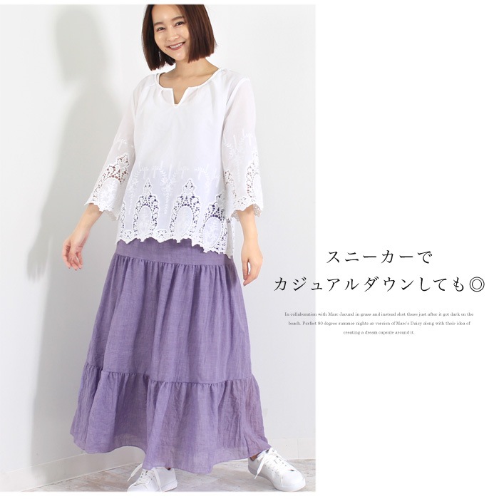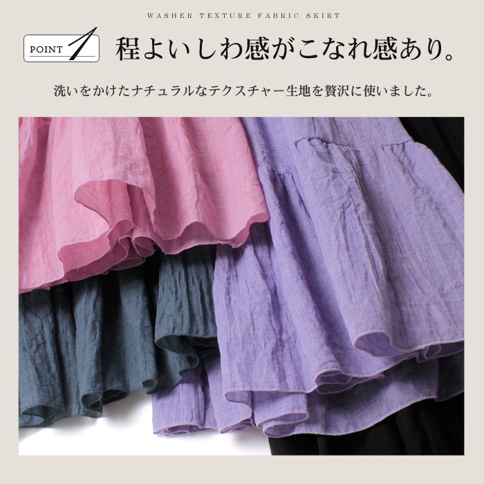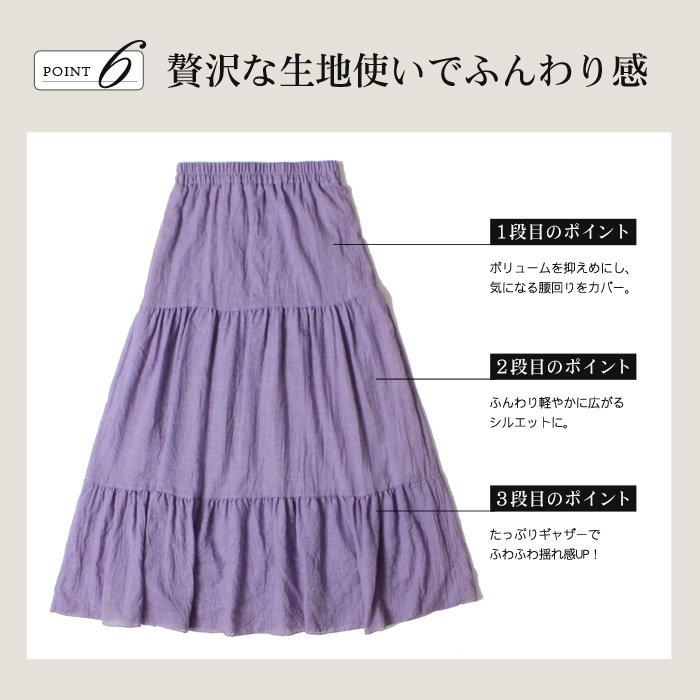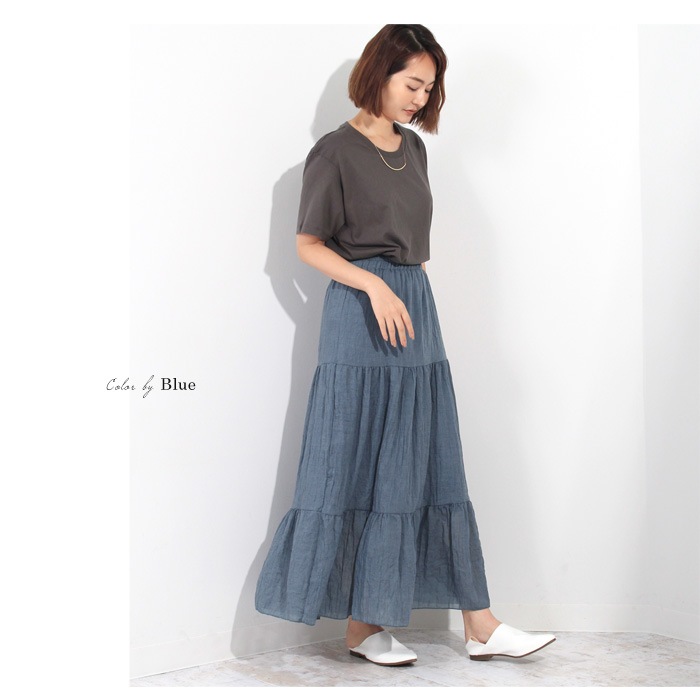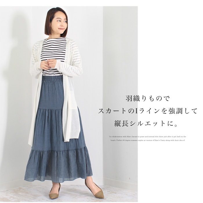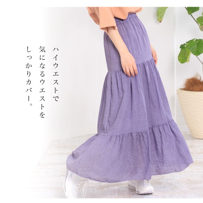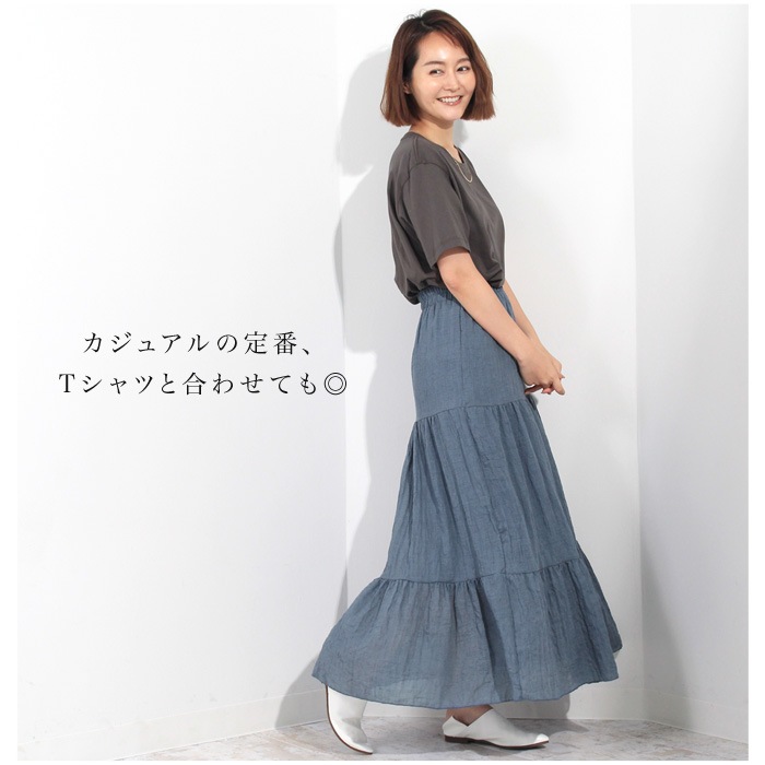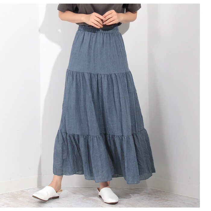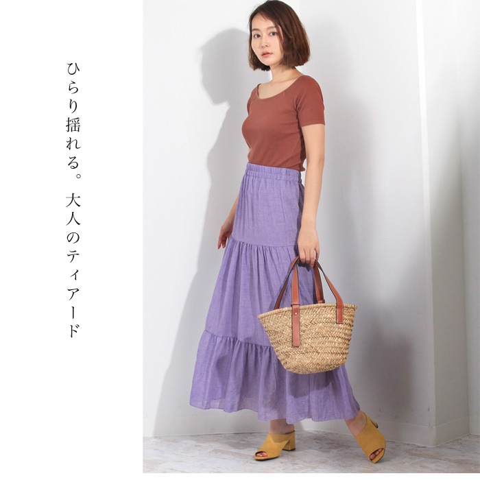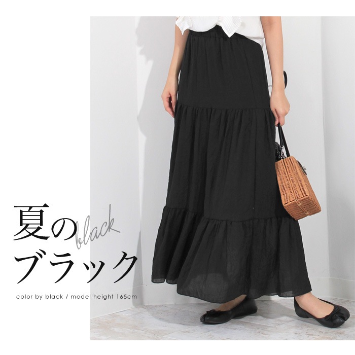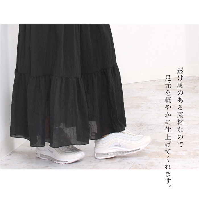 ボリューム感たっぷりのティアードが大人可愛いマキシスカート。