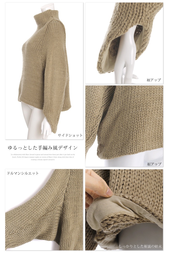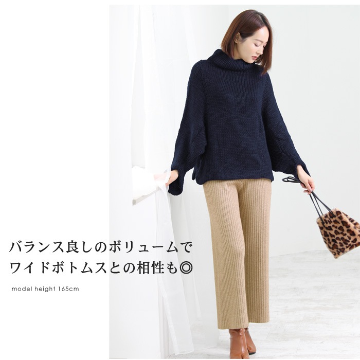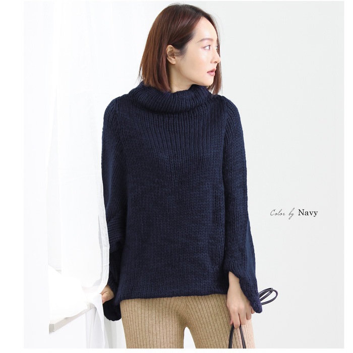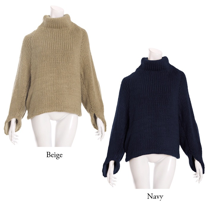 大きめのタートルネックとお袖のカッティングデザインがこなれ感をプラス!