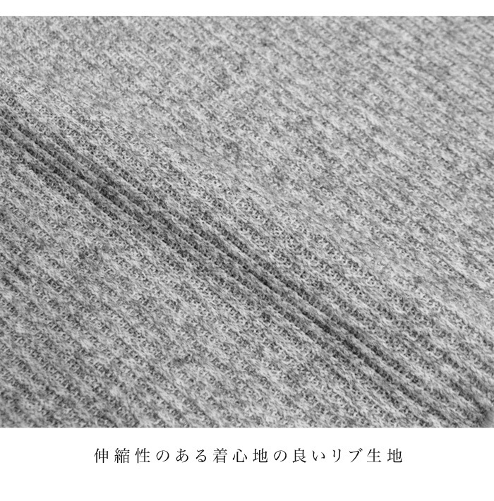 表面感のあるリブ素材に、深めのVネックが女性らしいすっきりとした抜け感を演出します。