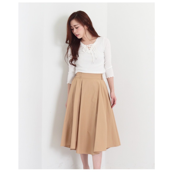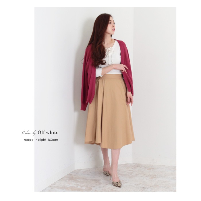 ボトムスを選ばないのでパンツやスカートにもコーデしやすく、ワイドシルエットのボトムスとも好相性。