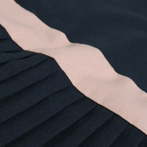 スカート部分はプリーツ加工でフェミニンサをプラス。