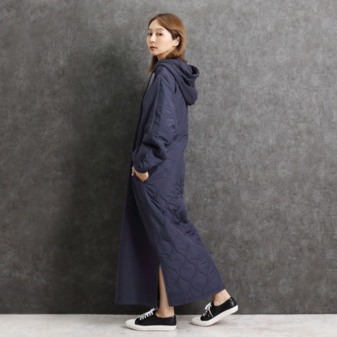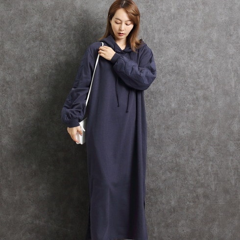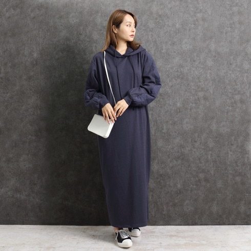シンプルに仕上げたパーカーワンピースは